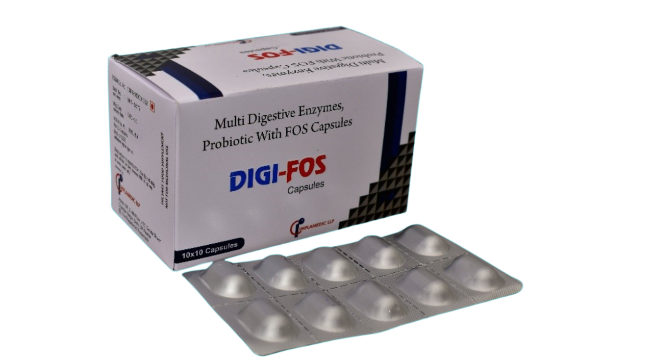 Digi FOS Capsule contains strains of good bacteria which have probiotic properties. It can be used to restore good bacteria in the intestine and help promote healthy digestion and absorption of nutrients. It can help remove toxins from the digestive tract and improve immunity and gastrointestinal health. It may help reduce stomach disorders and the loss of good bacteria due to the consumption of antibiotics.