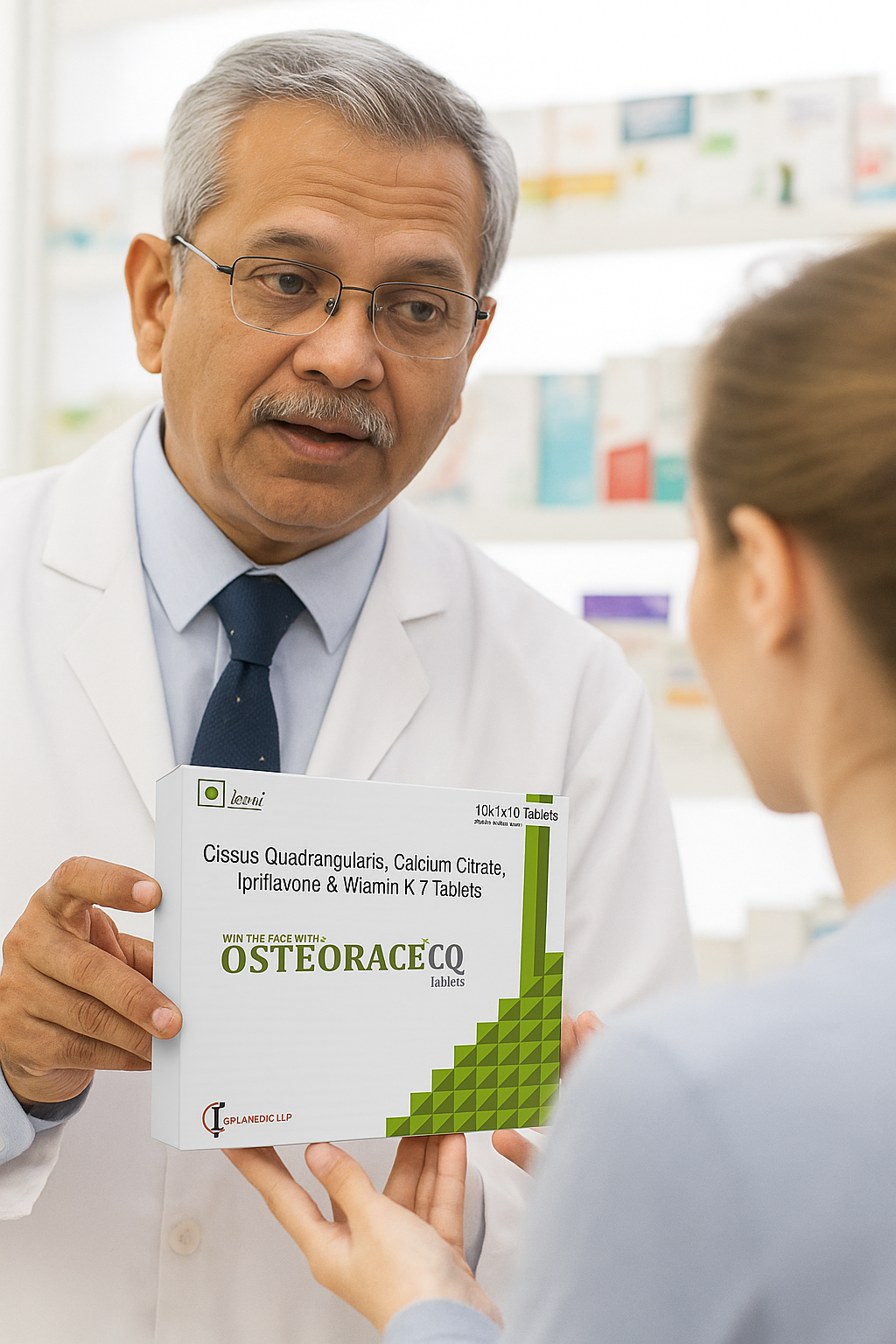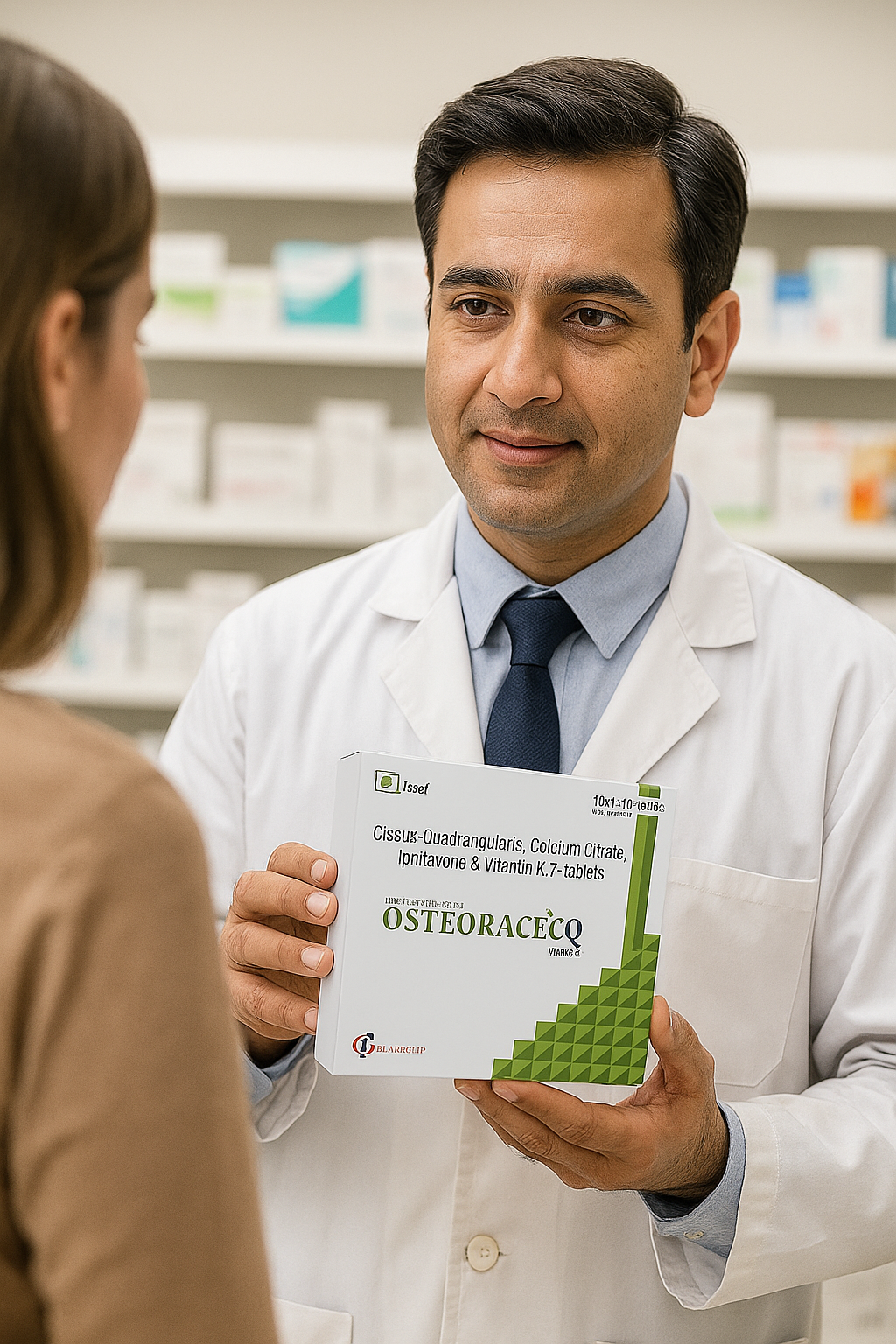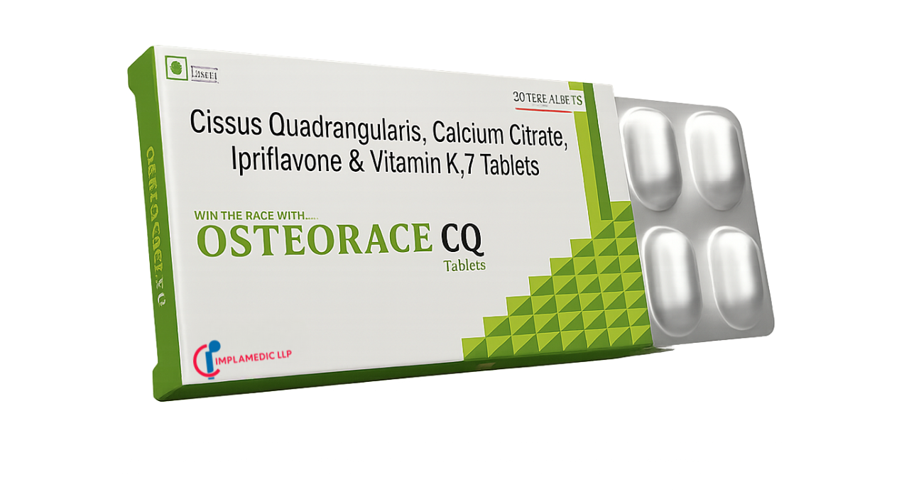 Osteorace CQ Tablet supports faster bone healing, strengthens weak bones, reduces inflammation, and restores bone density and tensile strength.