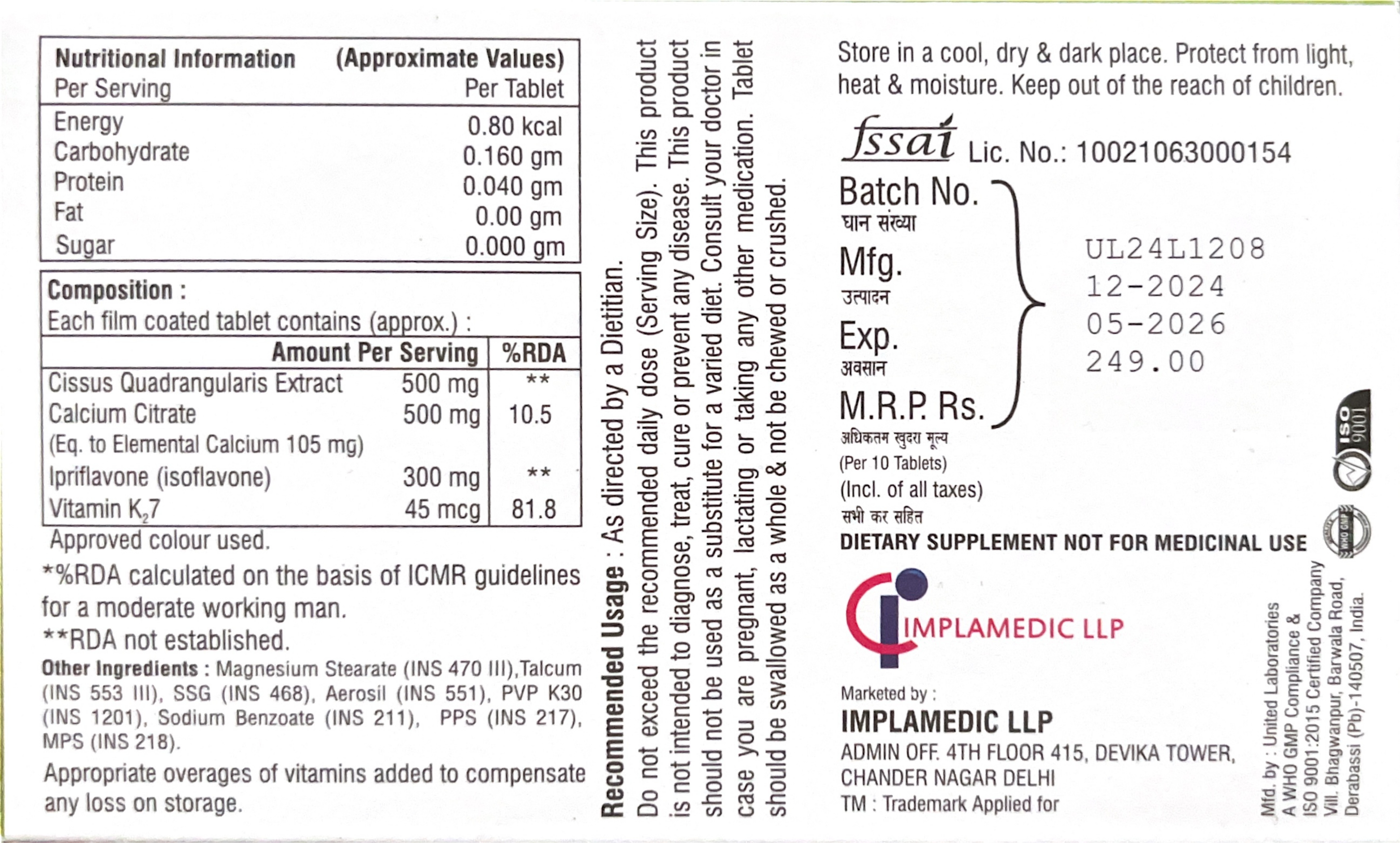 Category: Medicine Tags: BoneAndJointCare, BoneHealing, BoneHealth, BoneStrength, CalciumSupport, FractureCare, ImplamedicCare, JointAndBoneHealth, OrthopedicCare, OsteoraceCQ Brand: Implamedic