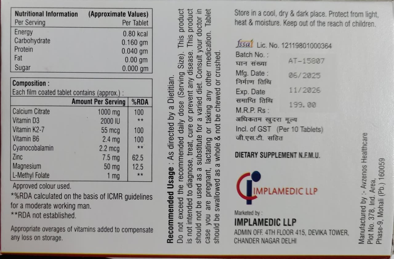 Category: Medicine Tags: BoneHealth, BrainAndBoneCare, CalciumSupport, ImplamedicCare, MuscleStrength, OrthopedicSupplement, OsteoraceK2, VitaminK2 Brand: Implamedic